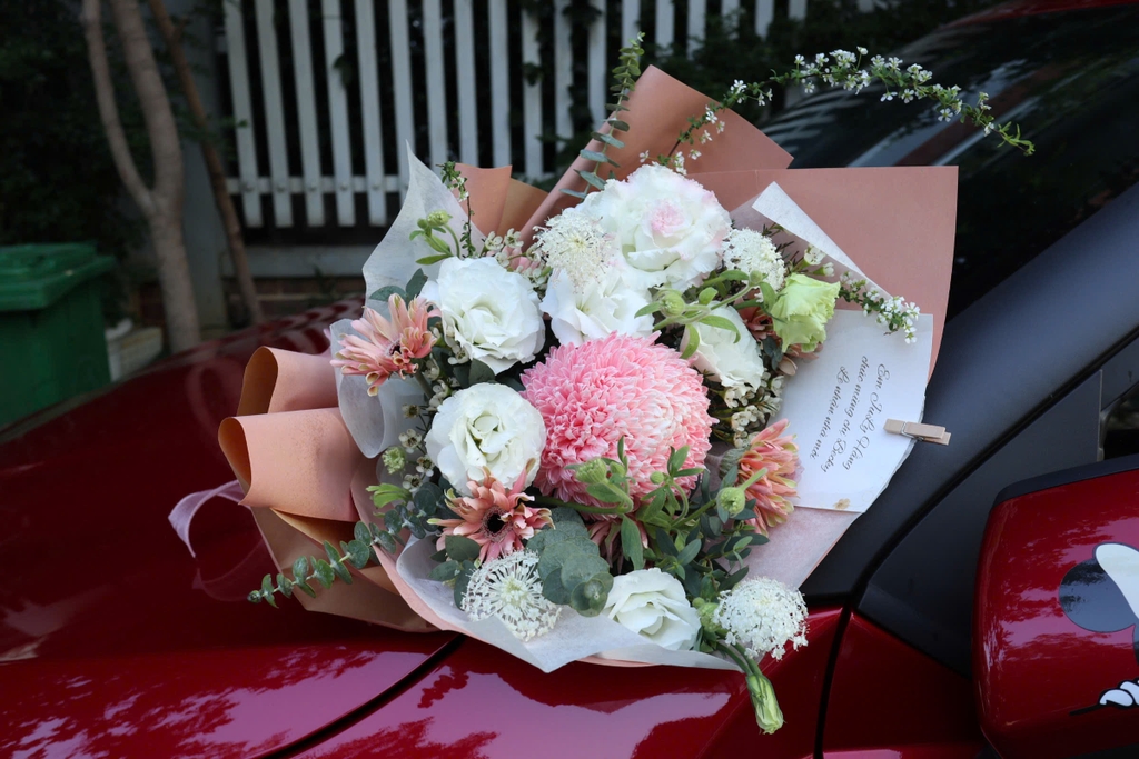 Hoa Nguyên Liệu: cúc mẫu đơn, cát tường, đồng tiền cánh xoăn, thúy châu,....