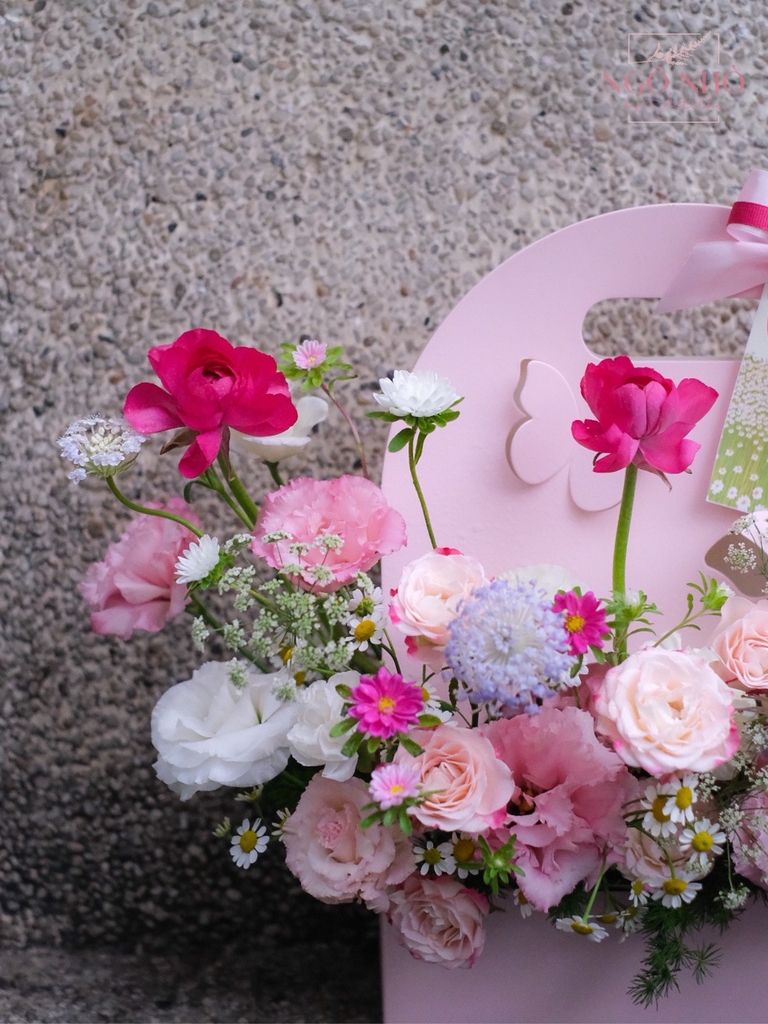 Giỏ hoa Garden Tone Đỏ Hồng 021