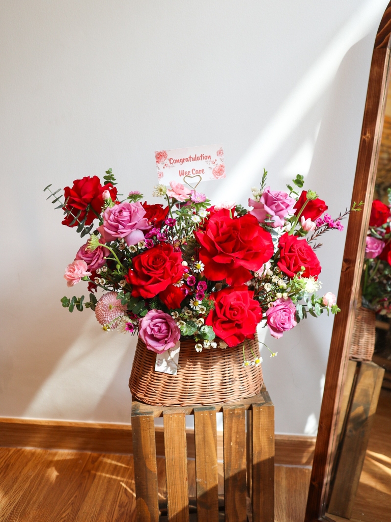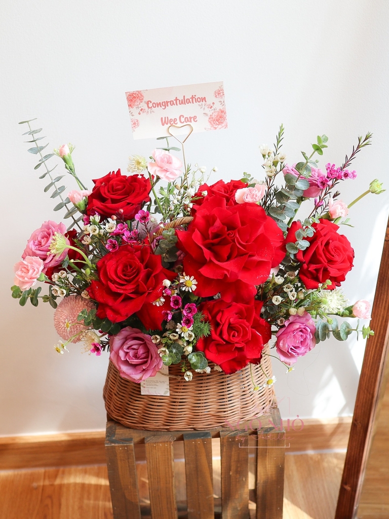Giỏ hoa Garden Tone Đỏ Hồng 021