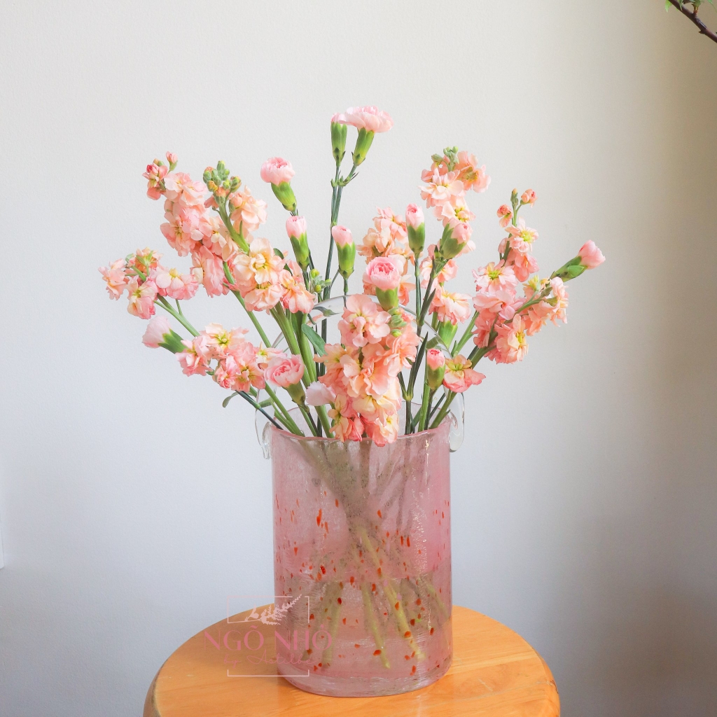 Tiêu Đề Ưu Đãi Hấp Dẫn: Bộ Set Hoa Thả Bình Tone Hồng - Sự Kết Hợp Tuyệt Vời Của Hoa Phi Yến Đà Lạt và Cẩm Chướng Hồng!